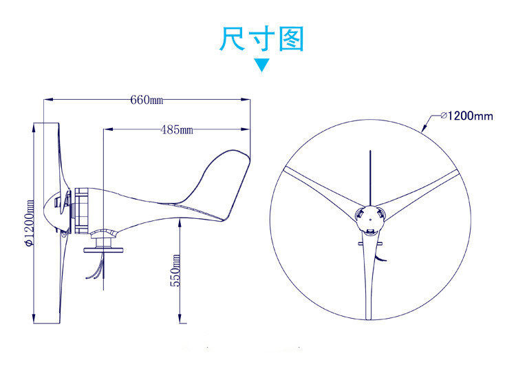 小型风力发电机300W400W风光互补路灯监控海洋渔船外贸跨境涡轮机 1台