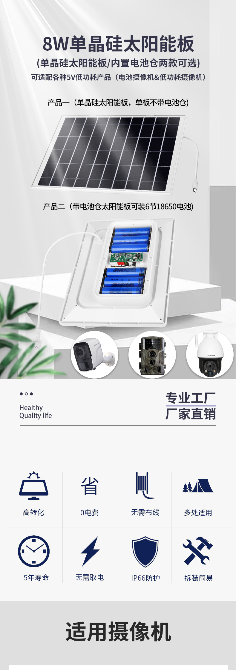 平台首页 > 清洁能源 > 亚马逊专供8W太阳能光伏板Google Ring电池摄像机太 阳能充电板 1个