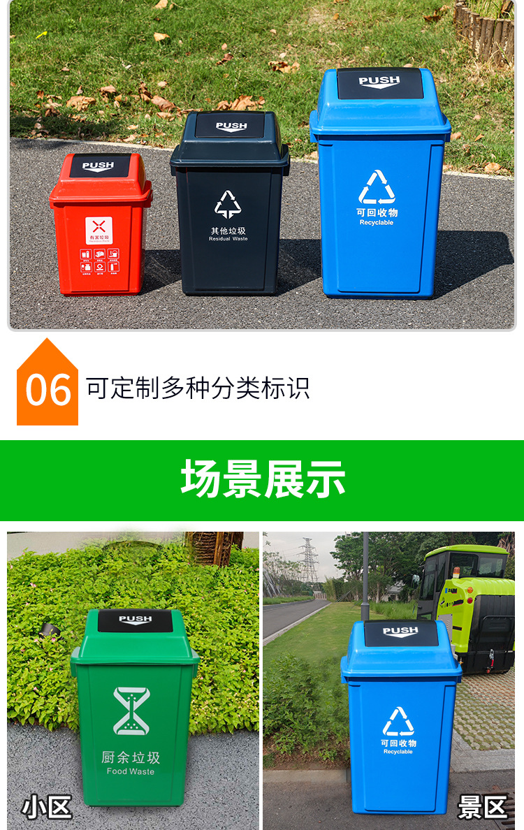 平台首页 > 环卫清洁 > 40L家用摇盖垃圾桶20升长方形按压弹盖筒60l塑料分类翻盖式垃圾桶 3件