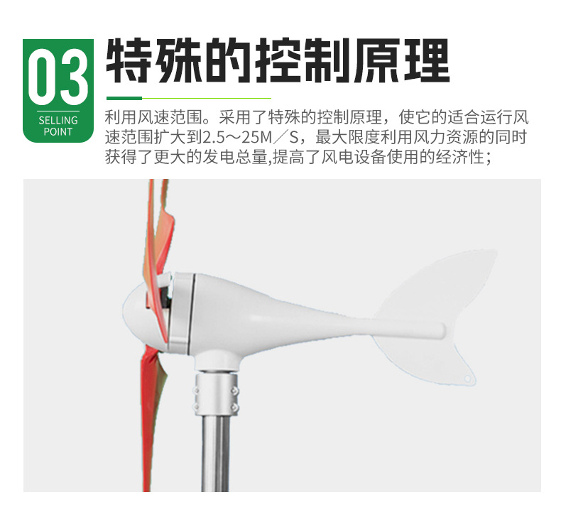 A3型水平轴风力发电机100w300W小型家用供电系统户外风光互补路灯 1个