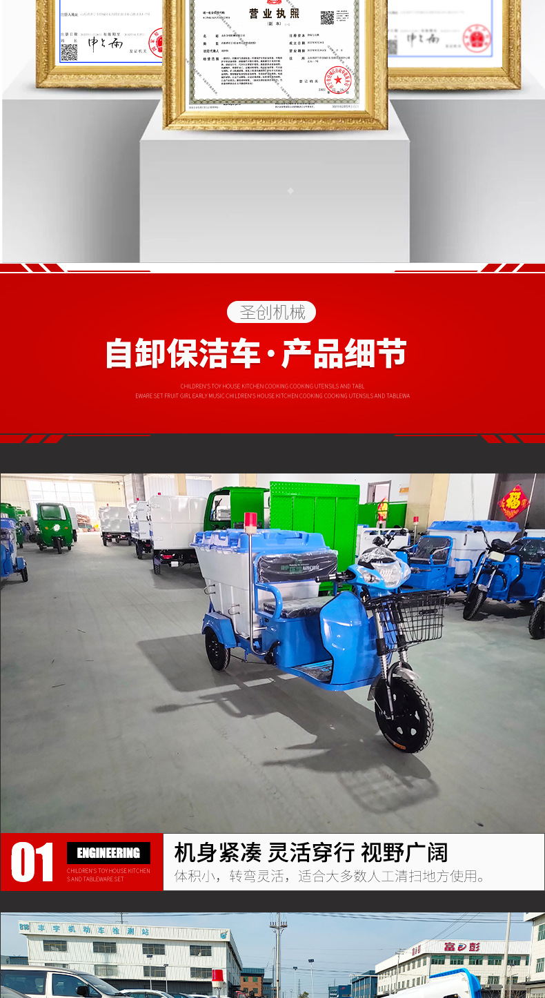 市政园林电动保洁车新能源小型三轮环卫垃圾清运车500L全封闭车厢 1部