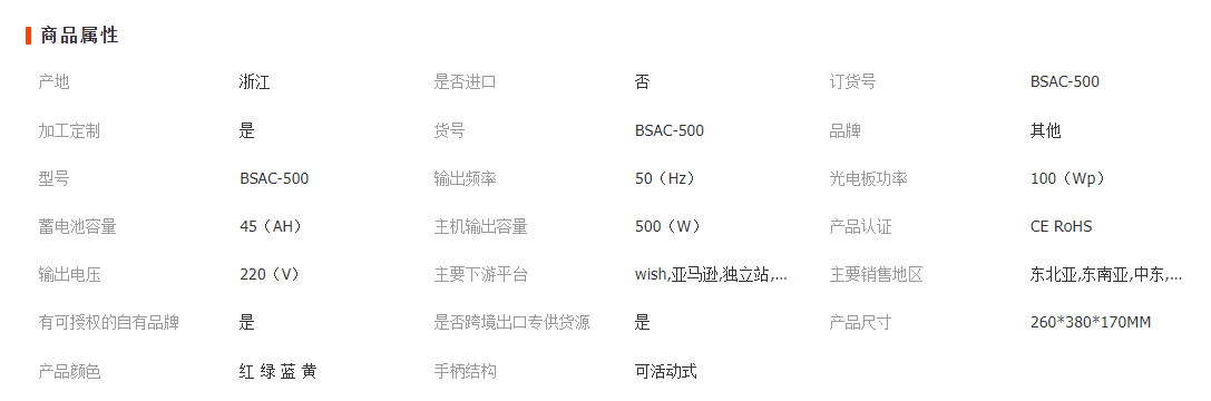 太阳板规格:100W18V(可定制其他规格)