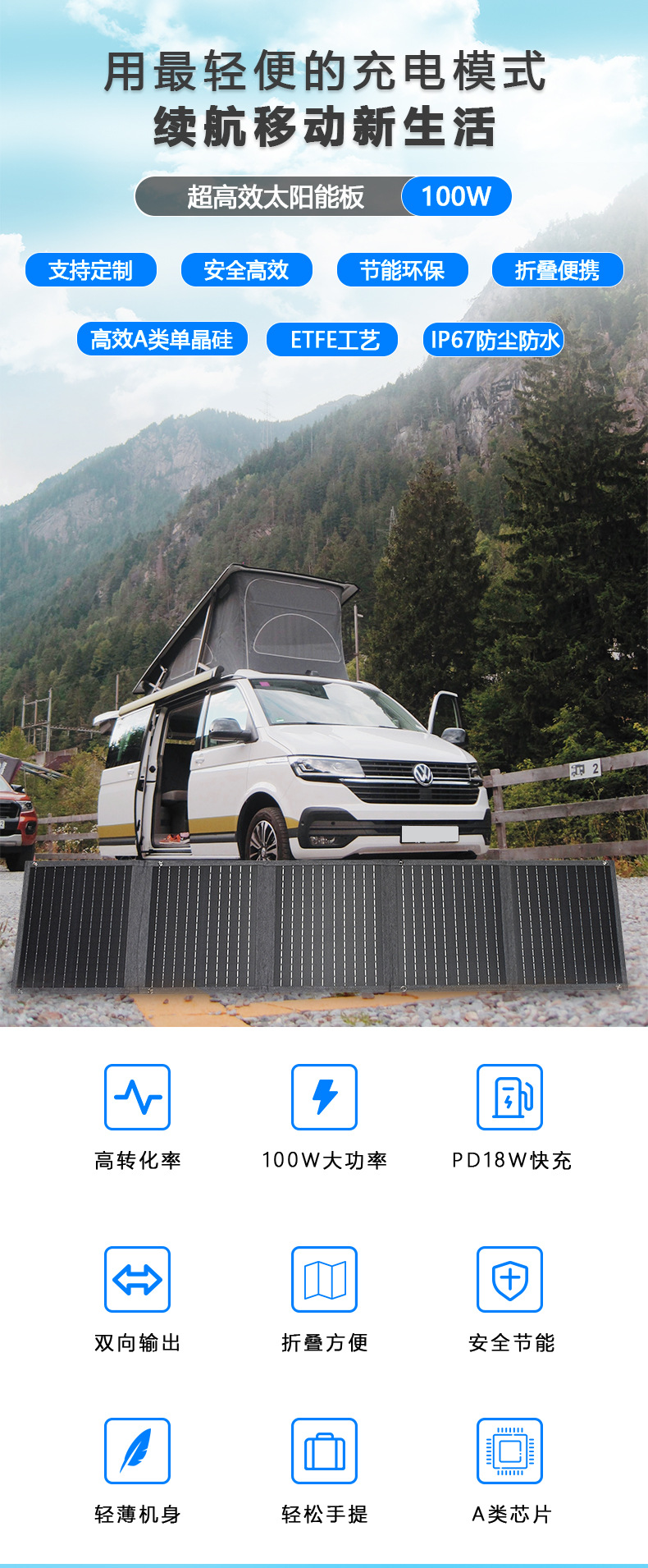 家用光伏太阳能折叠包100W储能充电太阳能布包 户外储能专用房车 1个
