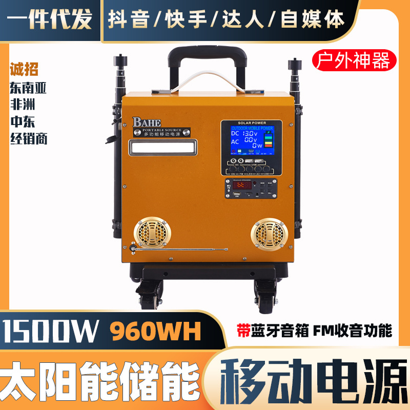 平台首页 > 清洁能源 > 蓝牙FM音箱220V太阳能储能户外移动电源快充外壳套料成品跨境批发 100个